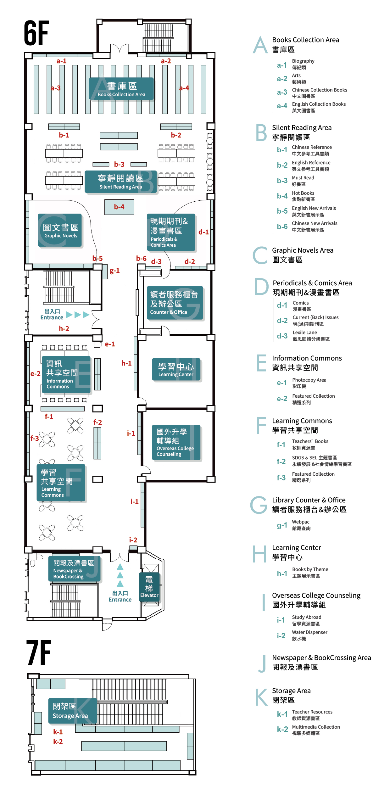秀岡校區中學圖書館位於第一教學大樓(國際部)6-7樓