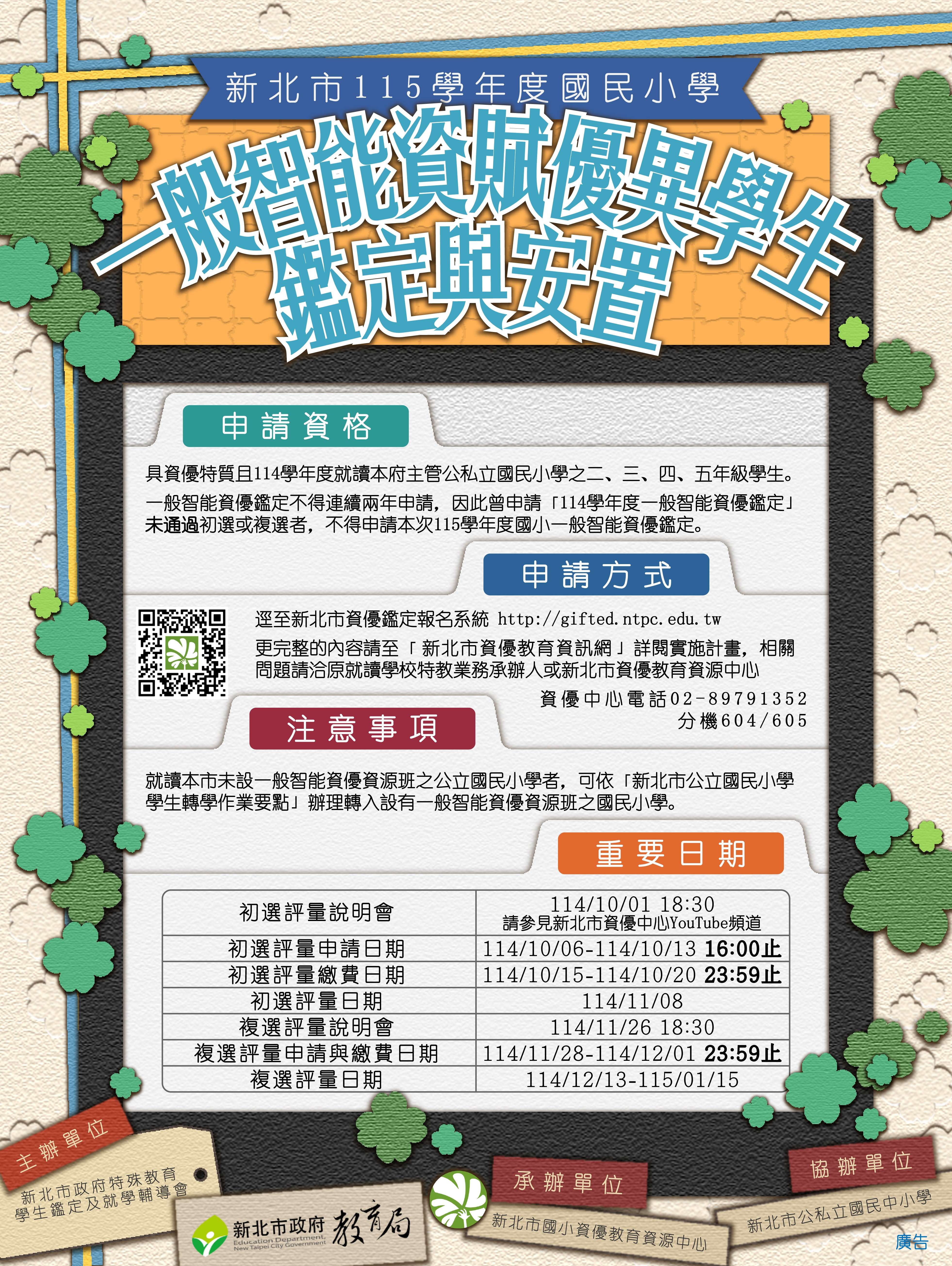 申請「114 學年度一般智能資優鑑定」未通過初選或複選者,不得申請本次115 學年度一